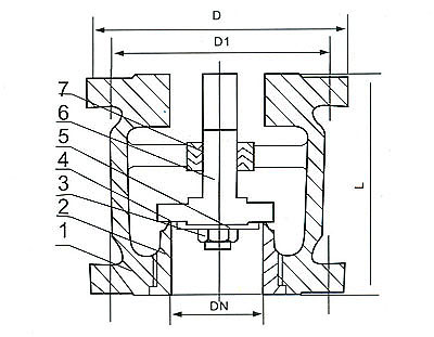 本閥由1.閥體 6.閥瓣 6.襯套組成.在需要條件下,可加弱簧裝置.