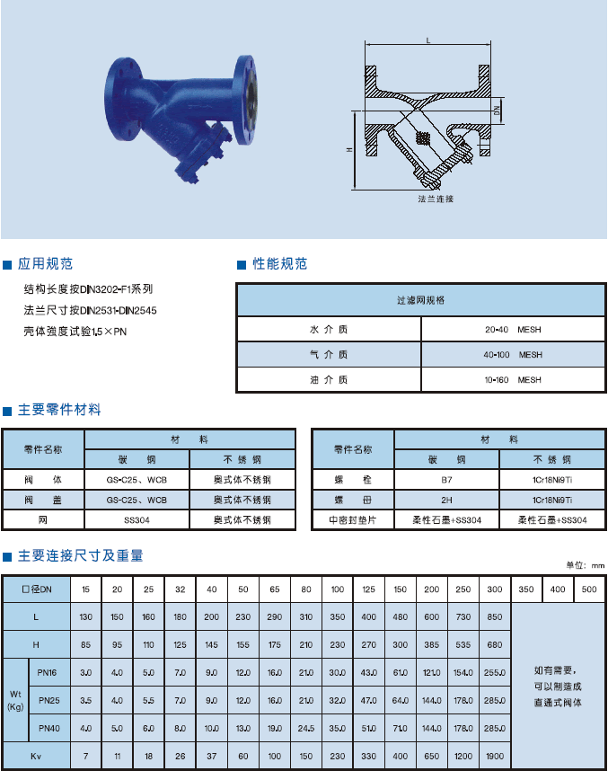 德標(biāo)Y型過濾器DIN3202-F1系列結(jié)構(gòu)長(zhǎng)度標(biāo)準(zhǔn);DIN2531-2545法蘭標(biāo)準(zhǔn);殼體強(qiáng)度試驗(yàn)為1.5*PN。 德標(biāo)Y型過濾器產(chǎn)品采用直流式結(jié)構(gòu),流體阻力相對(duì)較小,過濾網(wǎng)于高密度不銹鋼,安裝于管道過濾流體介質(zhì)販的雜質(zhì)與顆粒 德標(biāo)Y型過濾器適用于熱油系統(tǒng)、電站、蒸汽系統(tǒng)、熱水系統(tǒng)、熱電廠、天然氣供應(yīng)系統(tǒng)、水循環(huán)系統(tǒng)、冷凍系統(tǒng)等行業(yè)。 |