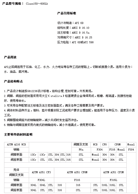 API止回閥是我公司的優質產品之一,在上海API止回閥廠家中享有極高的品質聲譽與服務評價.